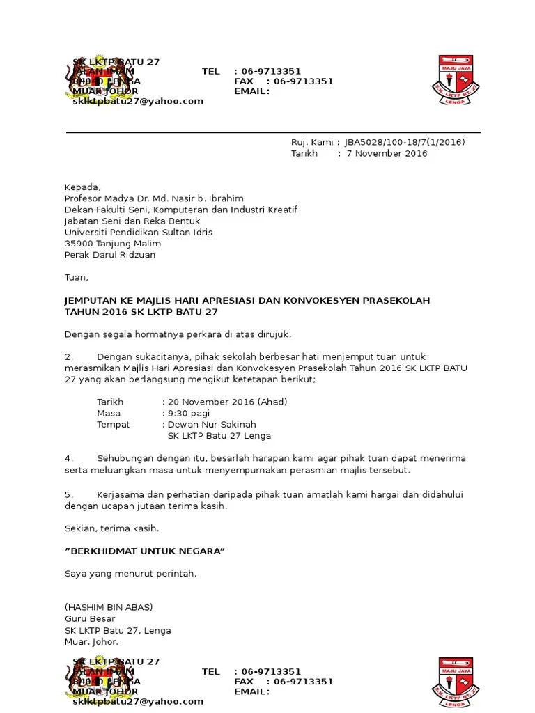 Sempena mesyuarat agung pibg yang akan diadakan . 822015 contoh surat jemputan sebagai perasmi.